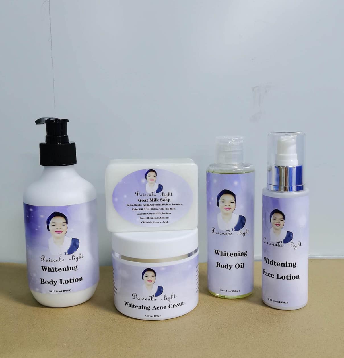 GLOW WITH DAISEABS-LIGHT BODY LOTION, DAISEABS-LIGHT BODY LOTION GOOD TO USE IN ALL SEASON CAN BE USE ON ANY TYPE OF SKIN. DAISEABS-LIGHT BODY LOTION IS CREAMMY LIGHT AND SMELL GOOD, DAISEABS-LIGHT BODY LOTION CAN USE ON CHILDREN OF 5 YEAR OF AGE UP AND ADULT FROM 18 YEARS OLD TO 100 YEARS OLD UP. ANYONE HAS DRY SKIN DAISEAB-LIGHT BODY LOTION WILL TRANSFORMING YOUR SKIN TO SMOOTH BABY SKIN. YOU WIL BE REJOUVENATING BEAUTIFULL WINKLE FREE AND ALWAYS LOOKING GOOD WHEN USING DAISEABS-LIGHT BODY LOTION.